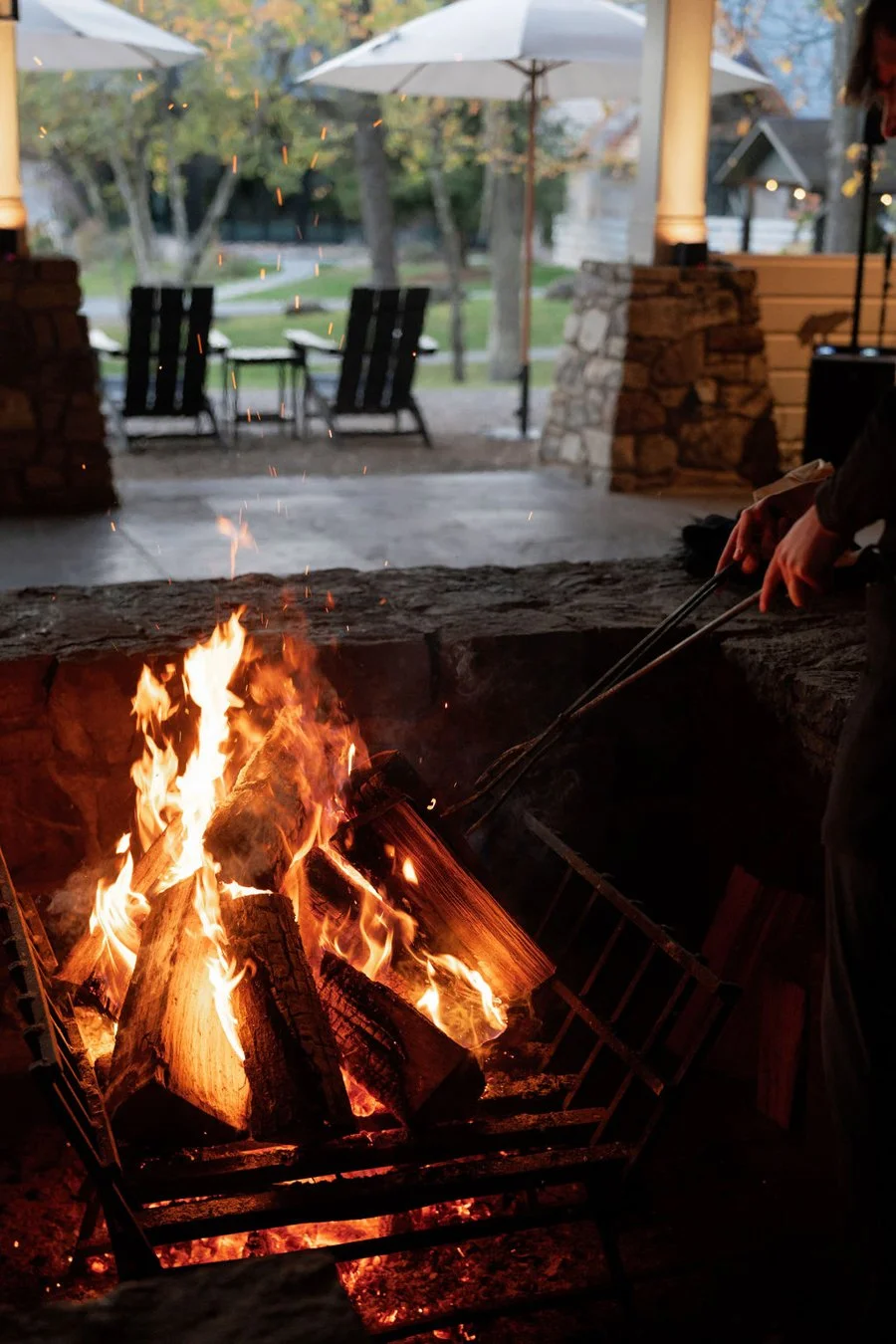 Before dinner, Jordan and Matt took portraits near the lake while guests checked into their accommodations and discovered welcome bags placed by our team. Dinner leaned Mediterranean and communal, served buffet style with mezze inspired offerings. Passed desserts followed, including familiar favourites and a nostalgic s’mores station. With the bar flowing and guests enjoying the Pavilion well into the evening, the space buzzed with conversation. It was a warm and relaxed beginning to the wedding weekend.