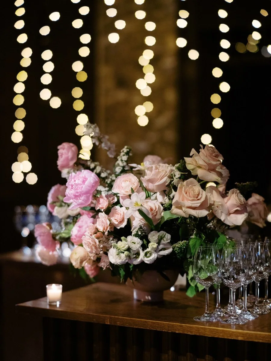 Miranda and Nat’s spring wedding at Blue Hill at Stone Barns was a celebration of colour, texture, and elegant abundance. With 164 guests, they embraced the venue’s full layout, from Restaurant to HayLoft, and filled it with lush florals in soft pinks and blush tones.